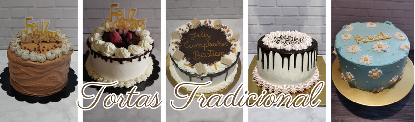 Tortas base bizcocho cubiertas en crema rellenas con sabores tradicionales.