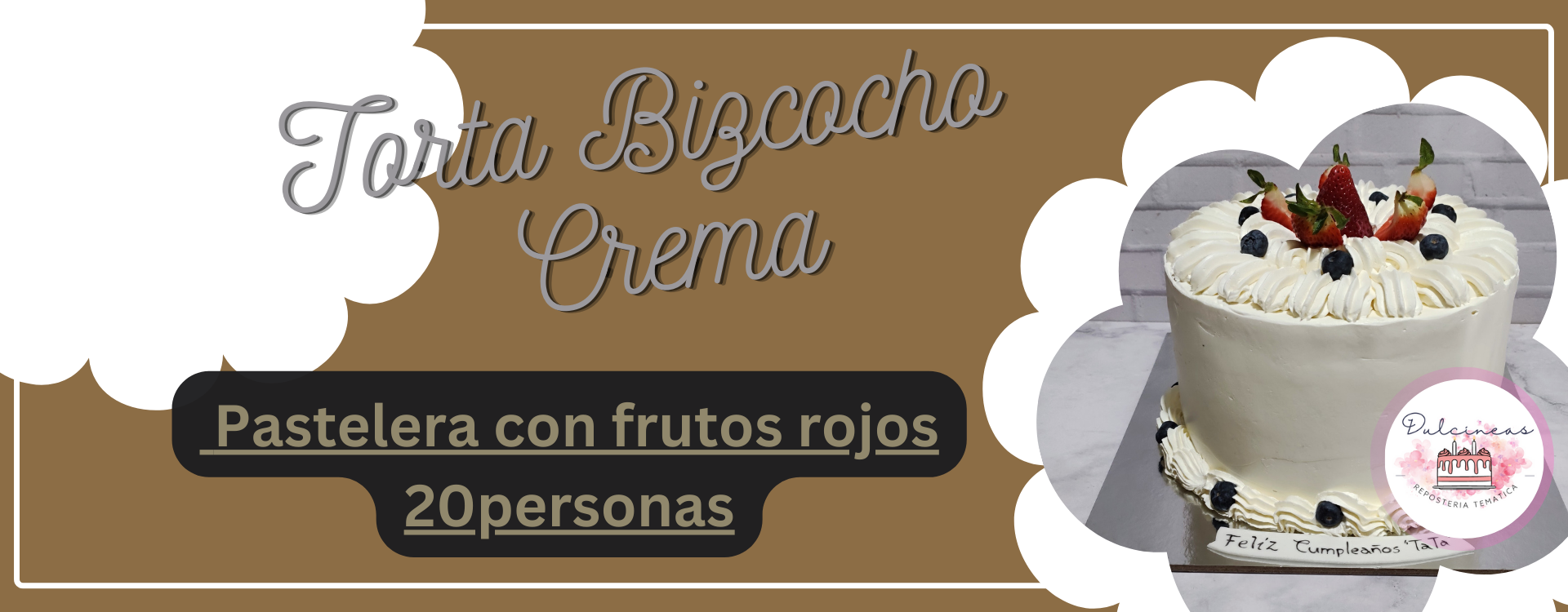 Nuestra torta de crema bizcocho de 20 personas es ideal para celebraciones íntimas y reuniones familiares. Te aseguramos que será el centro de atención en tu evento, generando suspiros de admiración y dejando a todos con ganas de repetir.