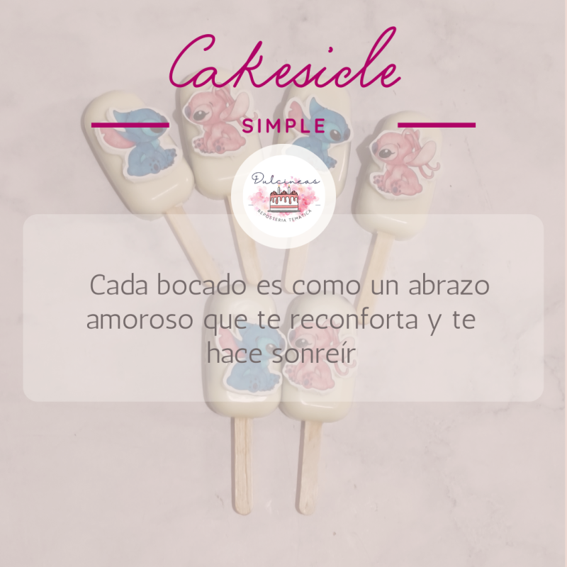 Es un pequeño pastel en forma de paleta, similar a un helado, que está cubierto con una capa de chocolate, decorado con diferentes colores, adornos comestibles o una imagen comestible. La base del Cakesicle un bizcocho manjar, Son ideales para ocasiones especiales, regalos o simplemente para disfrutar de un dulce capricho. Además, su presentación en formato de paleta los hace fáciles de sostener y comer.