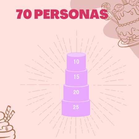 Esta torta de cuatro pisos puede adaptarse a tus necesidades de tamaño y cantidad de porciones. Según la información proporcionada, se puede crear para un rango de 70 a 170 personas. Esto asegura que todos tus invitados puedan disfrutar de un pedazo de esta deliciosa torta.